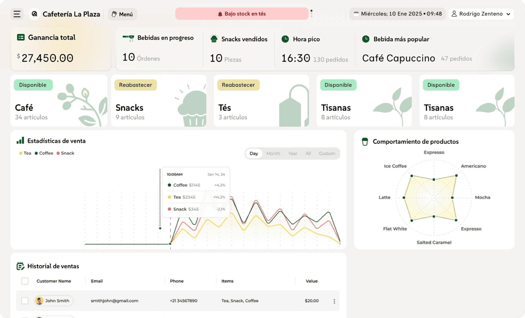 Gestión de stock e inventario en tiempo real.